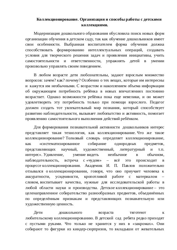 Коллекционирование в ДОУ как способ развития познавательной активности дошкольников