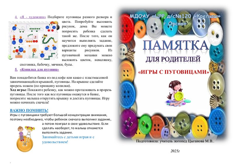 Консультация для педагогов "Использование пуговиц как дидактического материала для игр и занятий с детьми в детском саду"